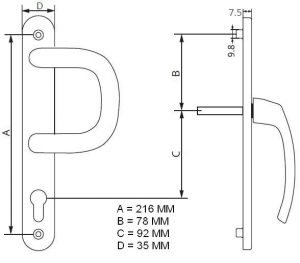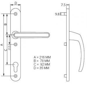 Kľučka na plastové vchodové dvere MTS 35/92/216 BIELA