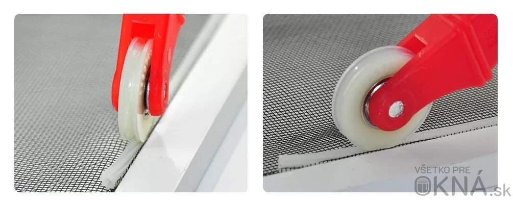 Pomocou kolieska jednoducho vsadíte sieťovinu spolu s gumou do drážky hliníkového profilu na ráme sieťky. Koliesko sa takisto využíva na osádzanie tesnenia do drážky na profile plastového okna a dverí. Pevné nylonové kolieska osadené s ložiskami zaručujú dlhú životnosť tohto nástroja.