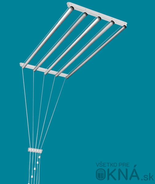 Je veľmi praktický na uchytenie v strope. Zavesíte prádlo a potom ho vytiahnete do výšky pod strop. Prádlo sa suší rýchlejšie lebo teplý vzduch stúpa nahor. Dá sa využiť v malých kúpelniach alebo na balkóne. Doporučená záťaž na jednu tyč je cca 5 kg. Je veľmi jednoduchý na montáž, dodávaný v malom balení s kompletnou kotviacou technikou.